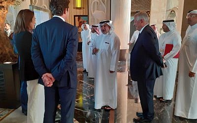 Le prince héritier Bahreïni Salman bin Hamad bin Isa Al Khalifa arrive au sommet de Manama,le 25 juin 2019. (Crédit : Raphael Ahren/Times of Israel)