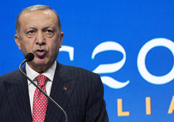 Turkey’s President Recep Tayyip Erdogan speaks during a media conference at the G20 summit in Rome, Sunday, Oct. 31, 2021. The two-day Group of 20 summit concluded on Sunday, the first in-person gathering of leaders of the world’s biggest economies since the COVID-19 pandemic started. (AP Photo/Domenico Stinellis)