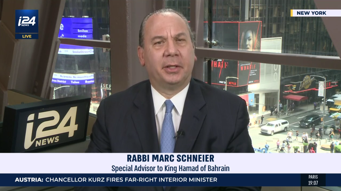 14 months after predicting on i24NEWS English “The Rundown” in Israel that Bahrain would take the lead on Middle East peace, FFEU President Rabbi Marc Schneier spoke with Nurit Ben and Calev Ben-David yesterday about how it is now happening and about the significance of the historic conference taking place in Bahrain.
